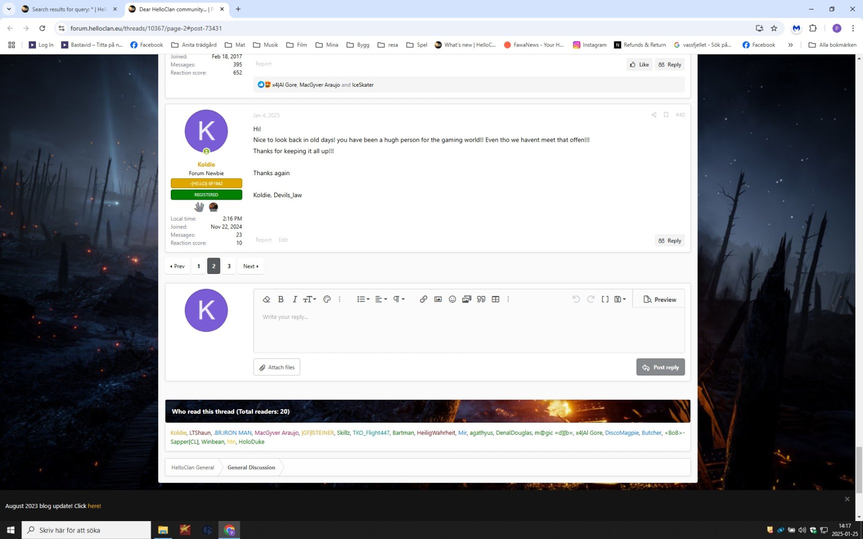 My first ingame name was Devils_Law then KoldF3ar and seens my clanmates allways said Koldie insteed of KoldF3ar did i start to use it...