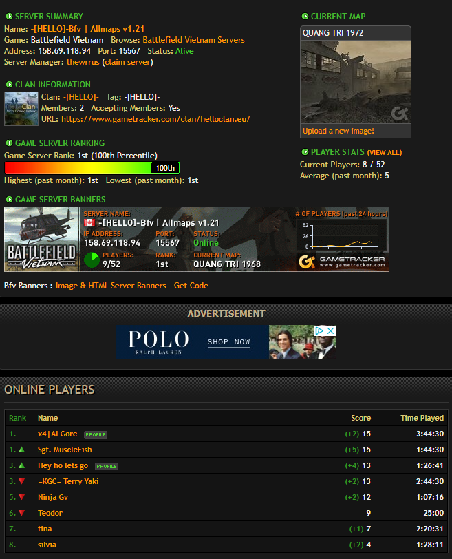 I've been here since more than 7 hours. All maps except Defence of Con Thien (about 6-8 players) have had decent numbers of players for a Saturday. I haven't seen so many players this late in the evening on a Saturday in a long time.
